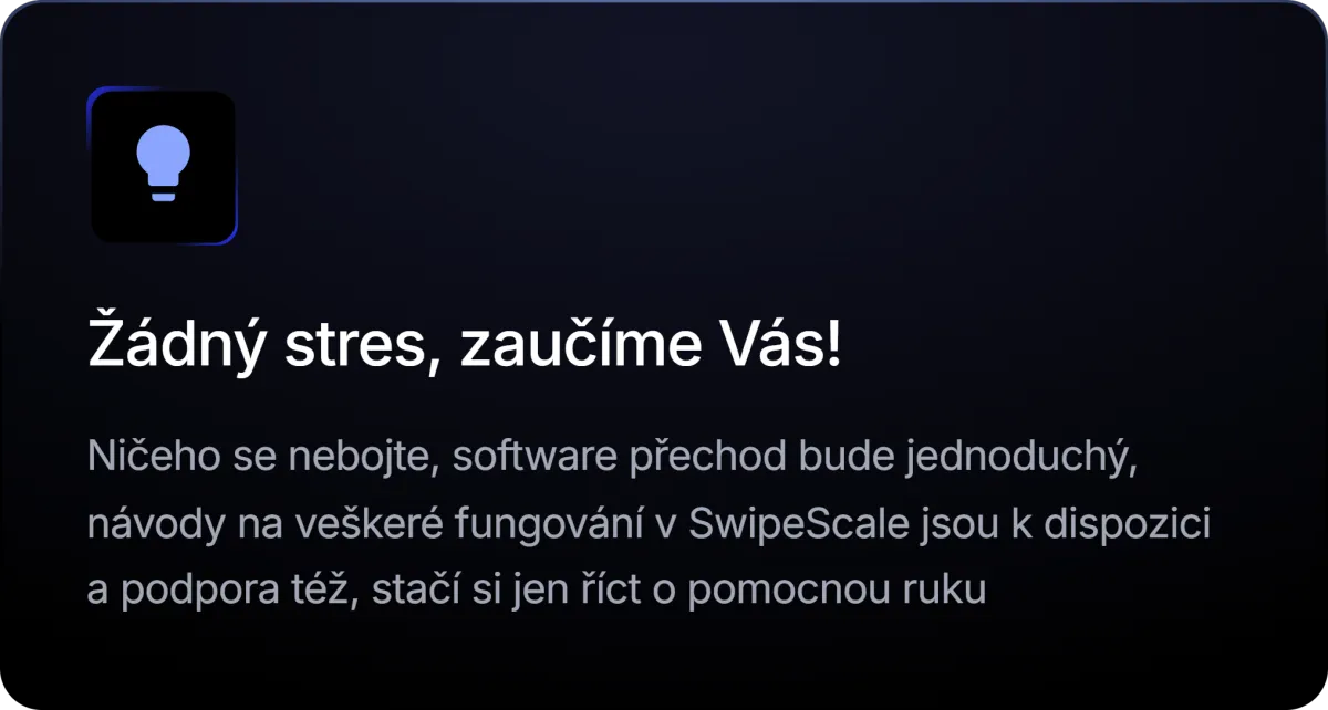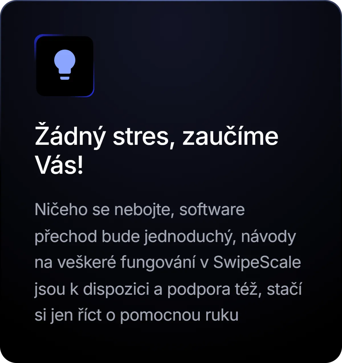 Pokud vám SwipeScale nesedne, kdykoliv zrušíte, stačí napsat podpoře a obratem máte peníze zpátky na účtě, bez závazků, bez zbytečných otázek.